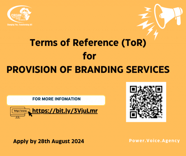 The Centre for Rights, Education and Awareness (CREAW) is a registered, feminist non-profit women’s rights organization founded in 1999 with a Vision of a just society where women and girls are valued, respected and enjoy full rights and live in dignity while the Mission is to transform the lives of all women and girls through championing gender equality, rights and social justice.